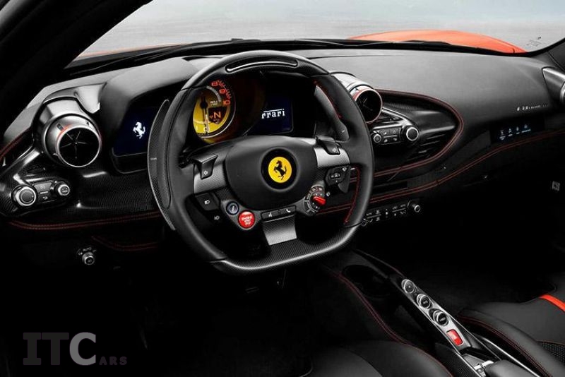 فراری با معرفی F8 تریبیوتو، فضای داخل کابین را نیز با استفاده از دریچههای ورودی هوای مدور (گرد) و طراحی جدید غربیلک فرمان بهبود بخشیده است. دکمههای موجود در داشبورد نیز همگی جدید هستند و پنل در همراهبا صفحهنمایش لمسی هفت اینچی در سمت سرنشین قرار دارند.