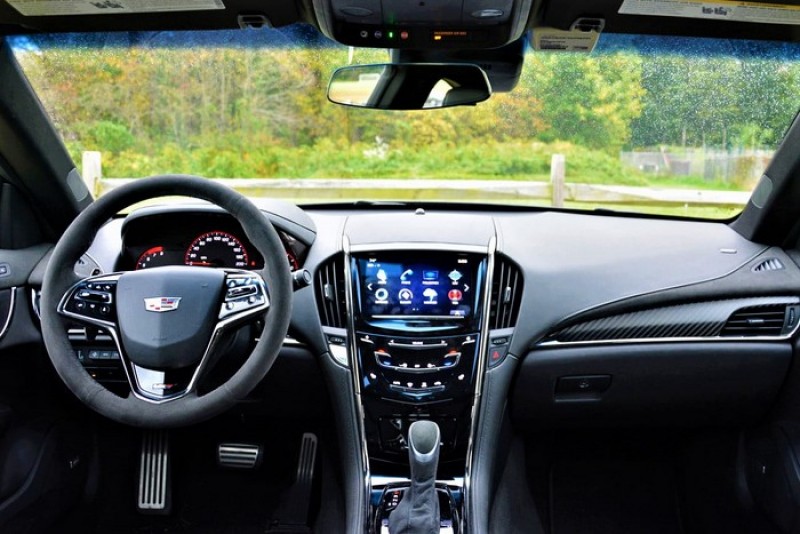 کارکردن با امکانات کادیلاک ATS-V کمی سخت است و حتی صفحهی لمسی این خودرو نیز خیلی کاربرپسند نیست و بهراحتی نمیتوان با آن ارتباط برقرار کرد. همچنین، درحالیکه تمامی رقبای کادیلاک بهسمت پشتآمپرهای دیجیتالی رفتهاند، ATS-V همچنان مانند قدیم از عقربههای آنالوگ استفاده میکند و فقط یک نمایشگر کوچک در بین آنها قرار دارد.